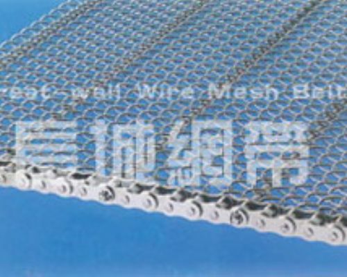 These belts are made by fiting chains to both sides of ordinary Wire conveyor belt.Belt and chain are synchronized through Stays(cross supports).